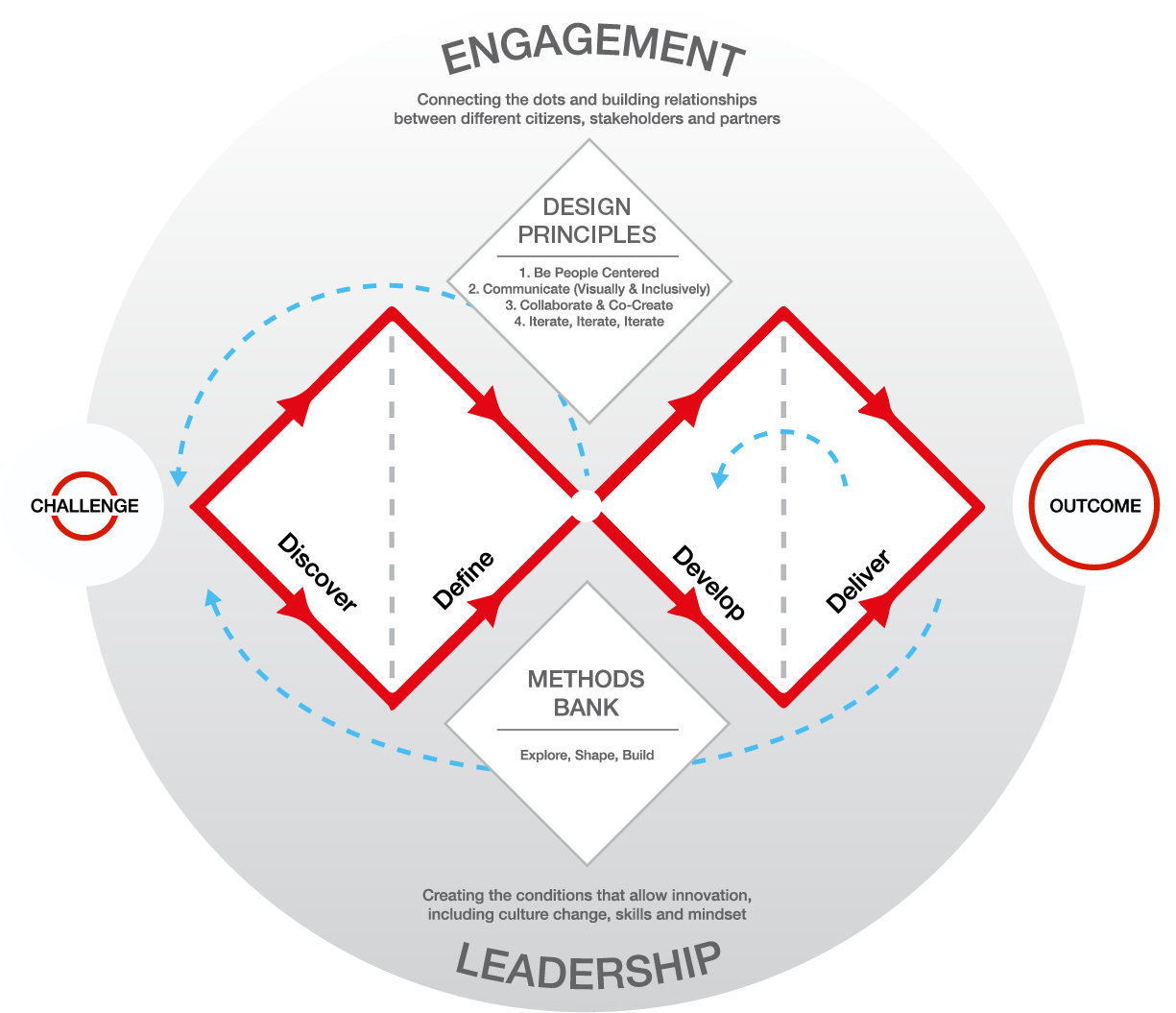 The problems we face today require more than one idea, they require working with other organizations and supporting people to be part of the solution. As important as the process and principles organizations we adopt, is the culture of an organization and how it connects with citizens and partners.
